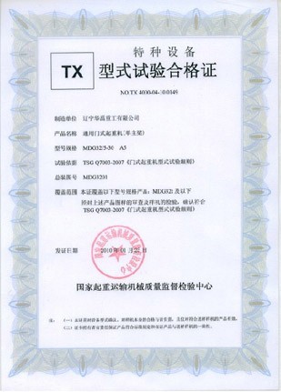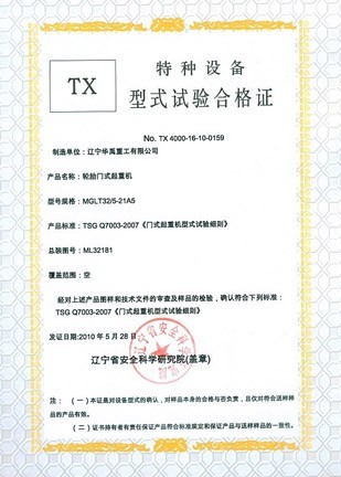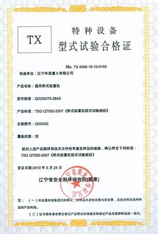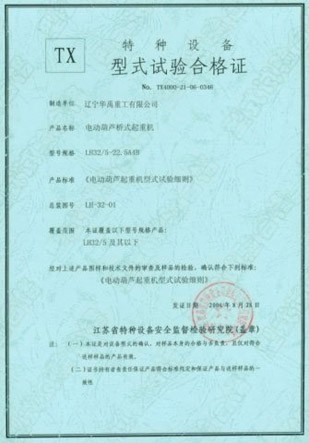 LDP電動(dòng)單梁型式試驗(yàn)合格證
